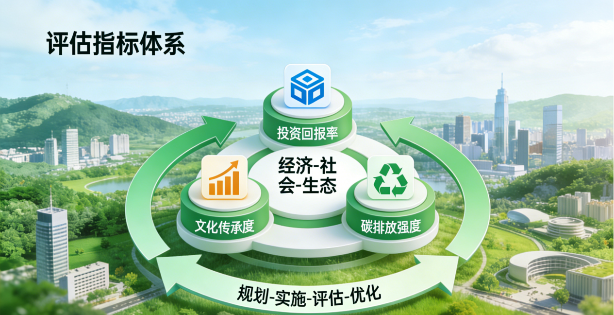 科學(xué)的評(píng)估體系需涵蓋“三大維度”:經(jīng)濟(jì)效益指標(biāo)包括投資回報(bào)率、營(yíng)業(yè)收入增長(zhǎng)率、就業(yè)拉動(dòng)效應(yīng)等,確保項(xiàng)目形成可持續(xù)的商業(yè)模式;社會(huì)效益指標(biāo)聚焦文化傳承、公共服務(wù)升級(jí)、社區(qū)凝聚力提升等,實(shí)現(xiàn)文化價(jià)值雙向傳遞;生態(tài)效益指標(biāo)包括監(jiān)測(cè)水質(zhì)保護(hù)、植被覆蓋率、碳排放強(qiáng)度等,推動(dòng)綠色低碳發(fā)展。