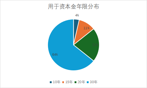 本次專項(xiàng)債券發(fā)行十二至十七期中共計(jì)28個(gè)項(xiàng)目通過(guò)發(fā)行專項(xiàng)債券募集項(xiàng)目資本金??偣舶l(fā)行金額25.66億元,占全部發(fā)行金額的10.98%。用于資本金的項(xiàng)目絕大多數(shù)采用了長(zhǎng)期限的債券品種,債券期限20年和30年的項(xiàng)目合計(jì)24個(gè)。具體各年限項(xiàng)目分布情況如下圖所示: