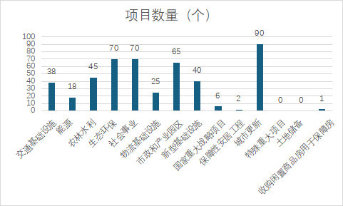 本次專項(xiàng)債券發(fā)行十二至十七期中,城市更新領(lǐng)域數(shù)量最多,為90個(gè);其次是生態(tài)環(huán)保和社會(huì)事業(yè)領(lǐng)域,發(fā)債數(shù)量均為70個(gè);特殊重大項(xiàng)目及土地儲(chǔ)備領(lǐng)域本次暫無(wú)項(xiàng)目發(fā)行。具體項(xiàng)目發(fā)行領(lǐng)域數(shù)量分布如下: