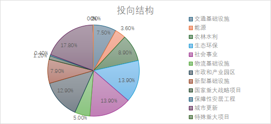 2.綠色低碳導(dǎo)向。能源類項(xiàng)目以充換電設(shè)施與城鄉(xiāng)電網(wǎng)升級(jí)為主,生態(tài)環(huán)保類中資源循環(huán)利用占比也較高,契合“雙碳”目標(biāo)。