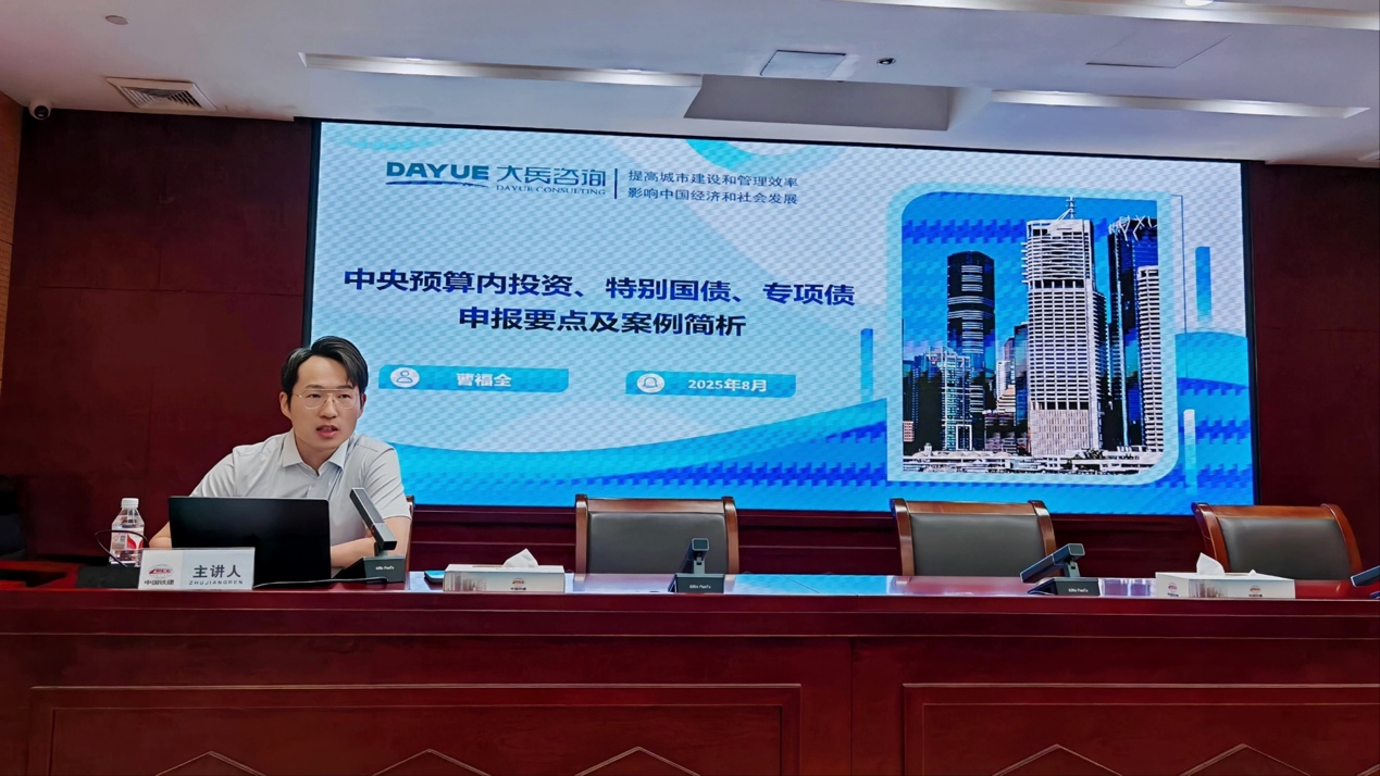 2025年8月26日,大岳咨詢董事總經(jīng)理曹福全攜高級經(jīng)理朱海航、劉長輝一行應(yīng)邀赴中鐵十四局集團公司,開展“新形勢下基礎(chǔ)設(shè)施投融資業(yè)務(wù)”專題培訓(xùn)。本次培訓(xùn)聚焦當(dāng)前政策環(huán)境與市場趨勢,圍繞上級資金申報、城市更新、全域土地綜合整治三大核心議題,深入解析政策導(dǎo)向與實操路徑,助力企業(yè)精準把握發(fā)展機遇,提升項目謀劃與落地能力。培訓(xùn)采用“主會場+線上分會場”形式,來自中鐵十四局總部及下屬單位共計80余人參與學(xué)習(xí)交流。