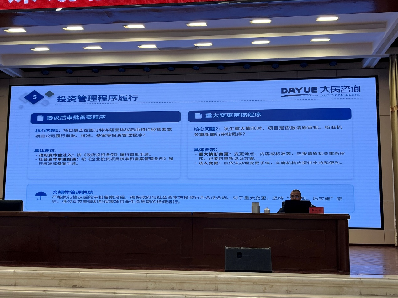 培訓(xùn)過程中,章利東總監(jiān)以國家最新投融資政策為導(dǎo)向,圍繞“項(xiàng)目謀劃”與“特許經(jīng)營政策交流及落地實(shí)操”兩大板塊,進(jìn)行了系統(tǒng)、細(xì)致的講解與經(jīng)驗(yàn)分享,培訓(xùn)內(nèi)容兼具理論高度與實(shí)踐指導(dǎo)性。