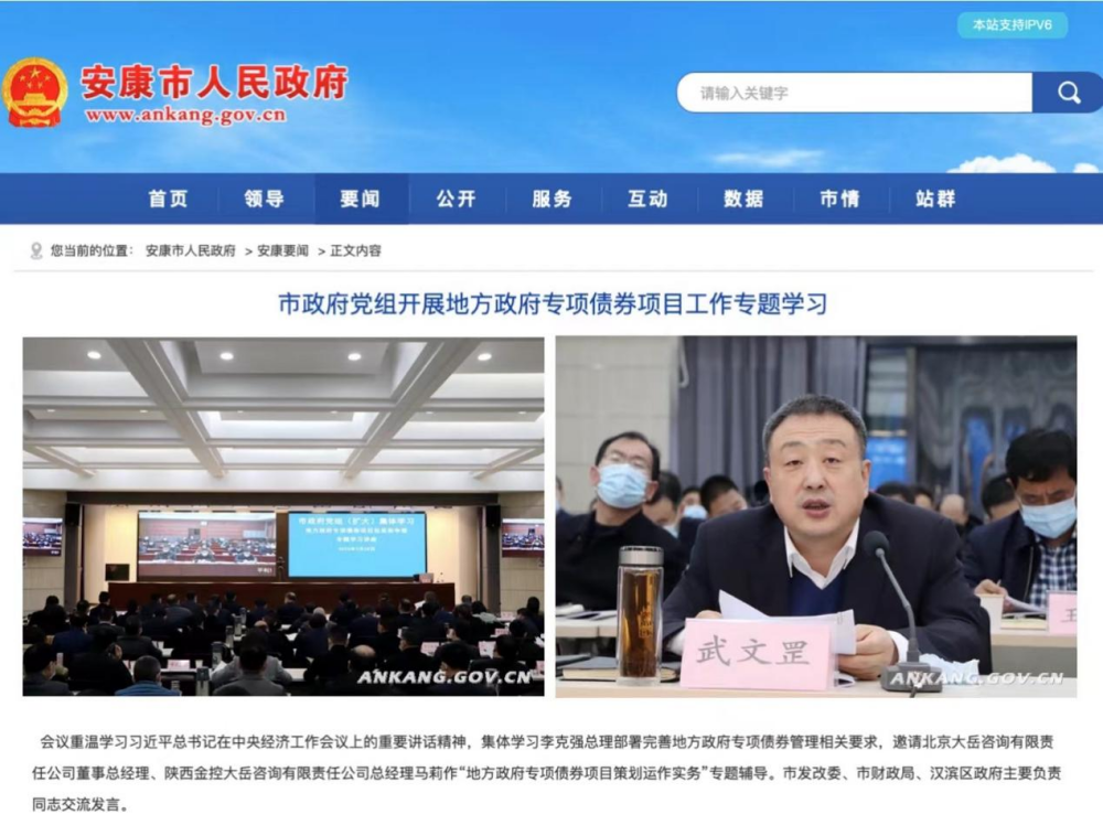 2月28日,大岳咨詢董事總經(jīng)理馬莉受安康市政府邀請,就如何高質(zhì)量策劃包裝專項(xiàng)債券項(xiàng)目進(jìn)行了專題輔導(dǎo)。武文罡市長主持會議,市政府黨組成員、市級領(lǐng)導(dǎo),全市各部門、縣區(qū)共計500余人參加。